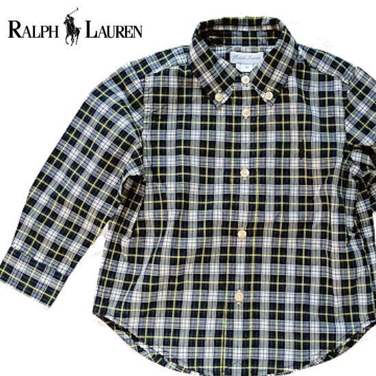 カジュアルなグリーンのチェックデザインのラルフローレン長袖シャツ(1歳~着用できます)と靴下、タオルの3点男の子出産祝いです。