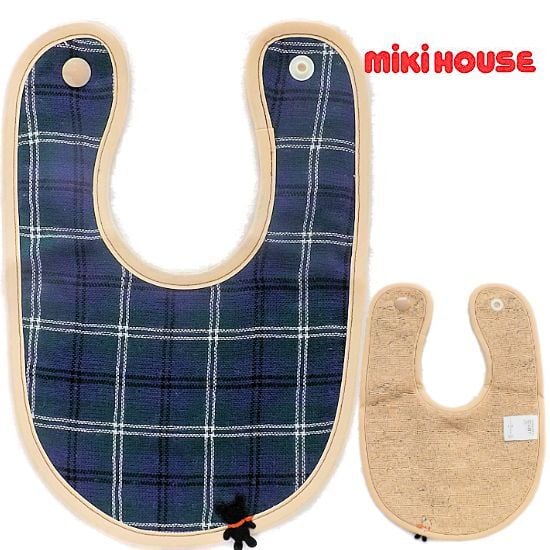 ミキハウスのアーガイル柄のおしゃれなよだれかけで生後3ヶ月くらいから。