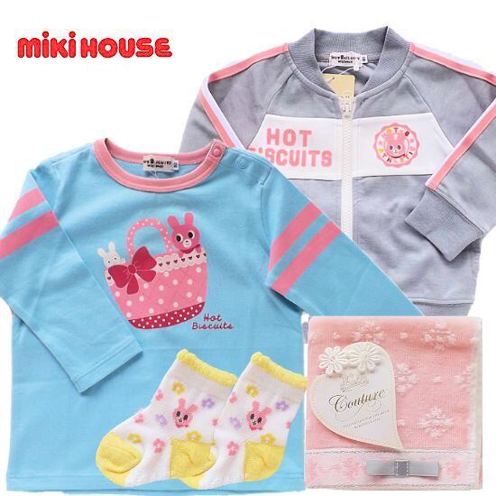 ミキハウス女の子出産祝い ジャージ素材ベビー服と長袖Tシャツ 1歳ベビー服セット