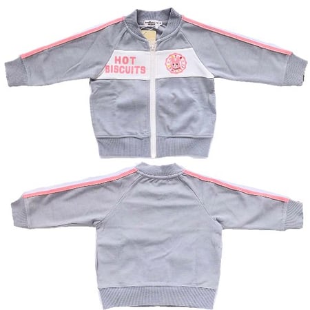 赤ちゃんが動きやすいジャージ素材のジャケットでキャップや白スニーカーとの相性もピッタリ♪